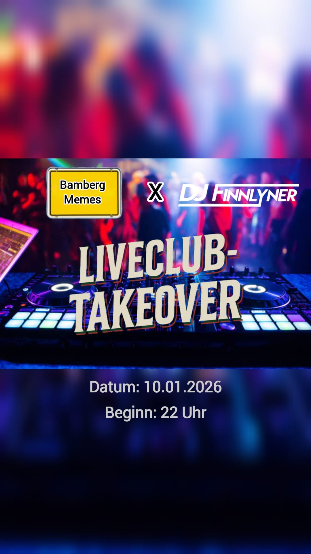 Bamberg Memes x DJ Finnlyner bringen am 10.01.2026 den Live-Club Bamberg zum Beben!