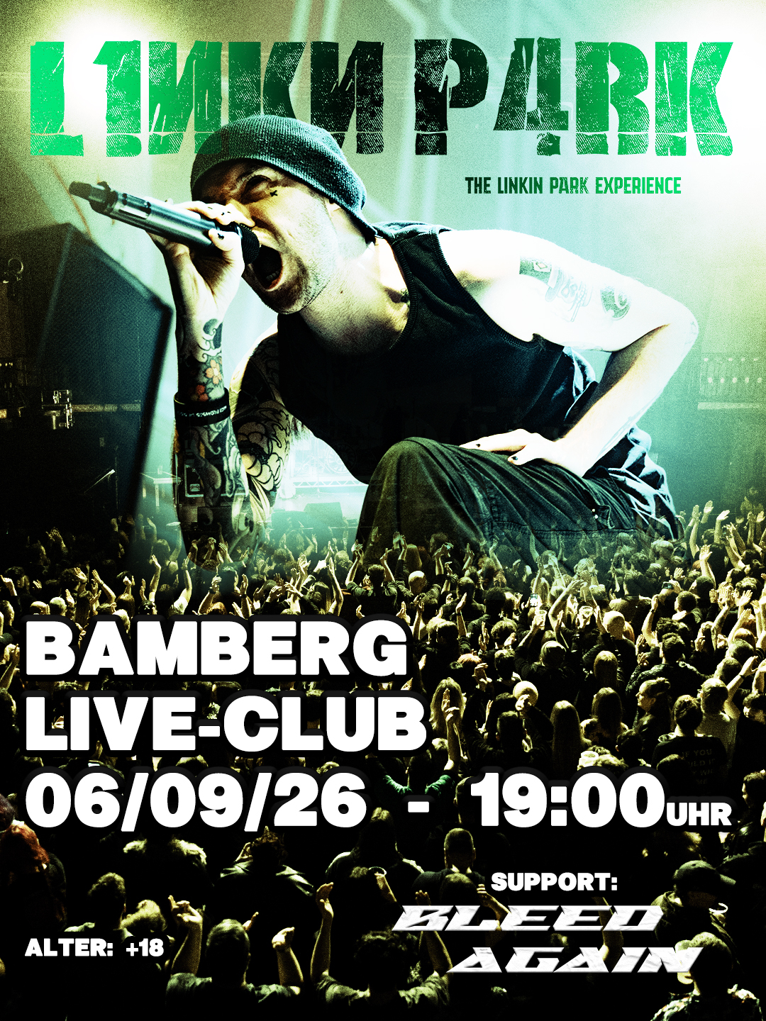 L1NKN P4RK kehren 2026 für ihre bisher größte UK/EU-Tour zurück. Mit ausverkauften Shows auf ihrer Tournee 2024 und dem Auftritt mit "1000 Lights" in der Utilita Arena Birmingham behaupten L1NKN P4RK stolz ihren Platz als authentischstes Linkin Park Tribut. Ihre raue, energiegeladene Performance entführt Euch von der Nu-Metal-Nostalgie der frühen 2000er bis zu den modernen Hits.