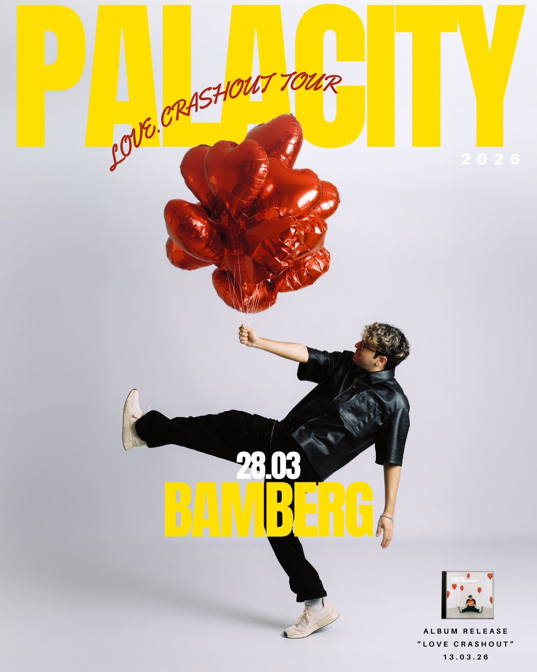 Nach der EP The Strays (2024) startet Palacity 2026 ins nächste Kapitel: Im März erscheint das neue Album „Love Crashout“, begleitet von einer Deutschlandtour mit Finale am 28.3. in der Heimat Bamberg. Freut euch auf neue Songs, starke Emotionen und pure Feelgood-Energy auf der Bühne!