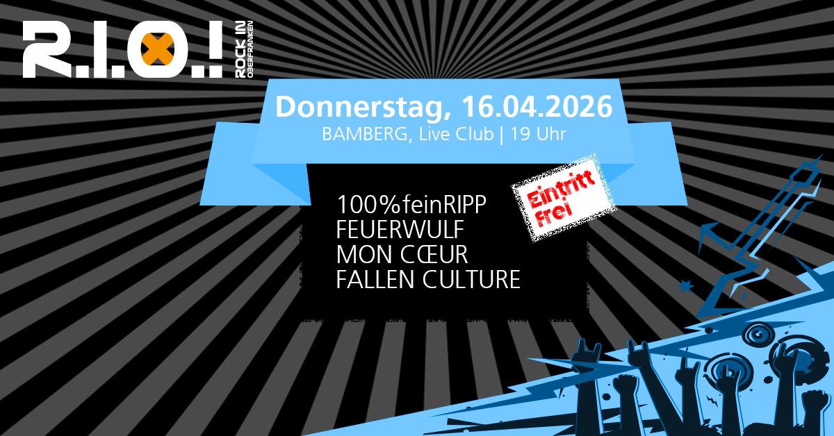 Die R.I.O.!-Clubtour ist auch 2026 wieder für euch am Start und präsentiert euch vier der heißesten Bands Oberfrankens.